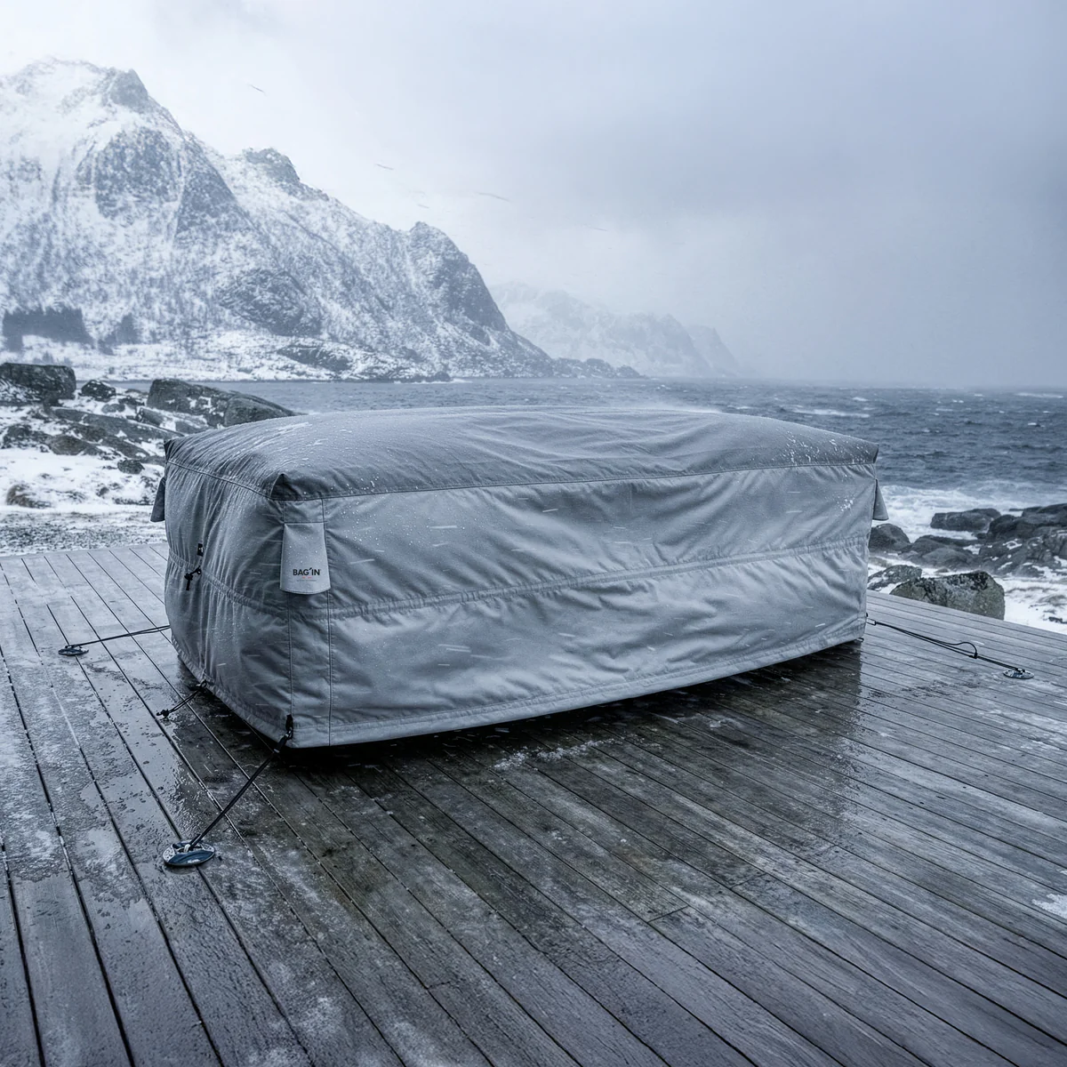 Med BAG´IN Nordic lagrar du dina utemöbler tryggt genom hela vintern. Detta är inte bara ett möbelöverdrag, utan en solid och genomtänkt förvaringsförpackning som skyddar mot snö, is, regn, frost och hårda vindförhållanden. Konstruerad för att klara skiftande temperaturer och långa, fuktiga säsonger ger Nordic-serien ett heltäckande skydd så att möblerna håller sig torra, rena och redo för en ny säsong – år efter år. Perfekt för stugor, kustområden och alla hem i det nordiska klimatet där utemöbler står ute genom hela vintern.