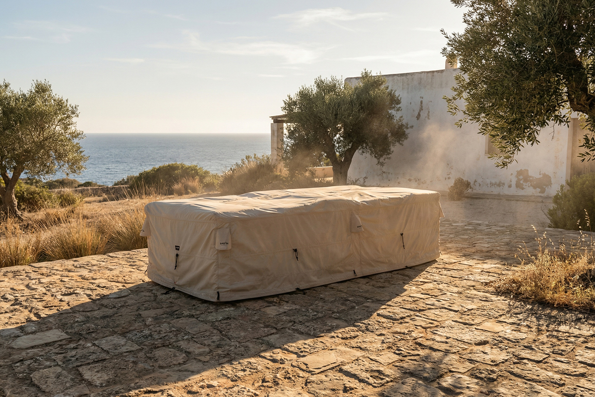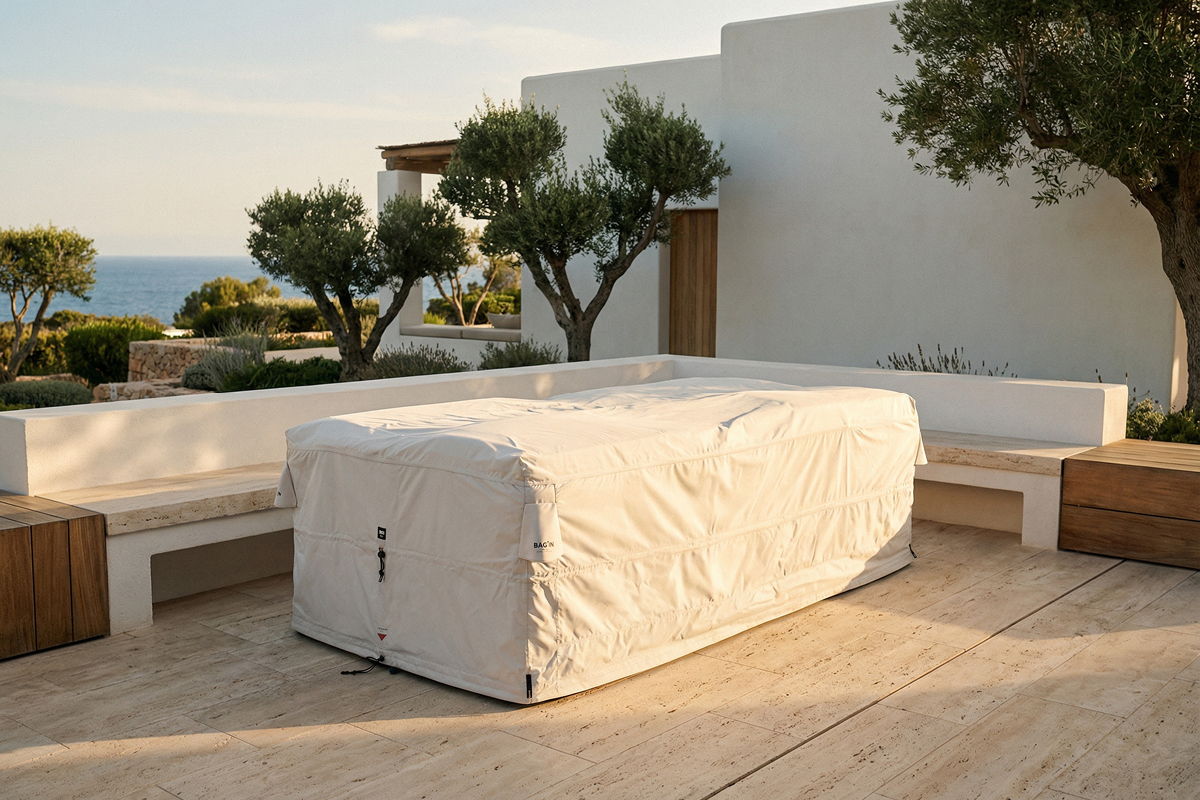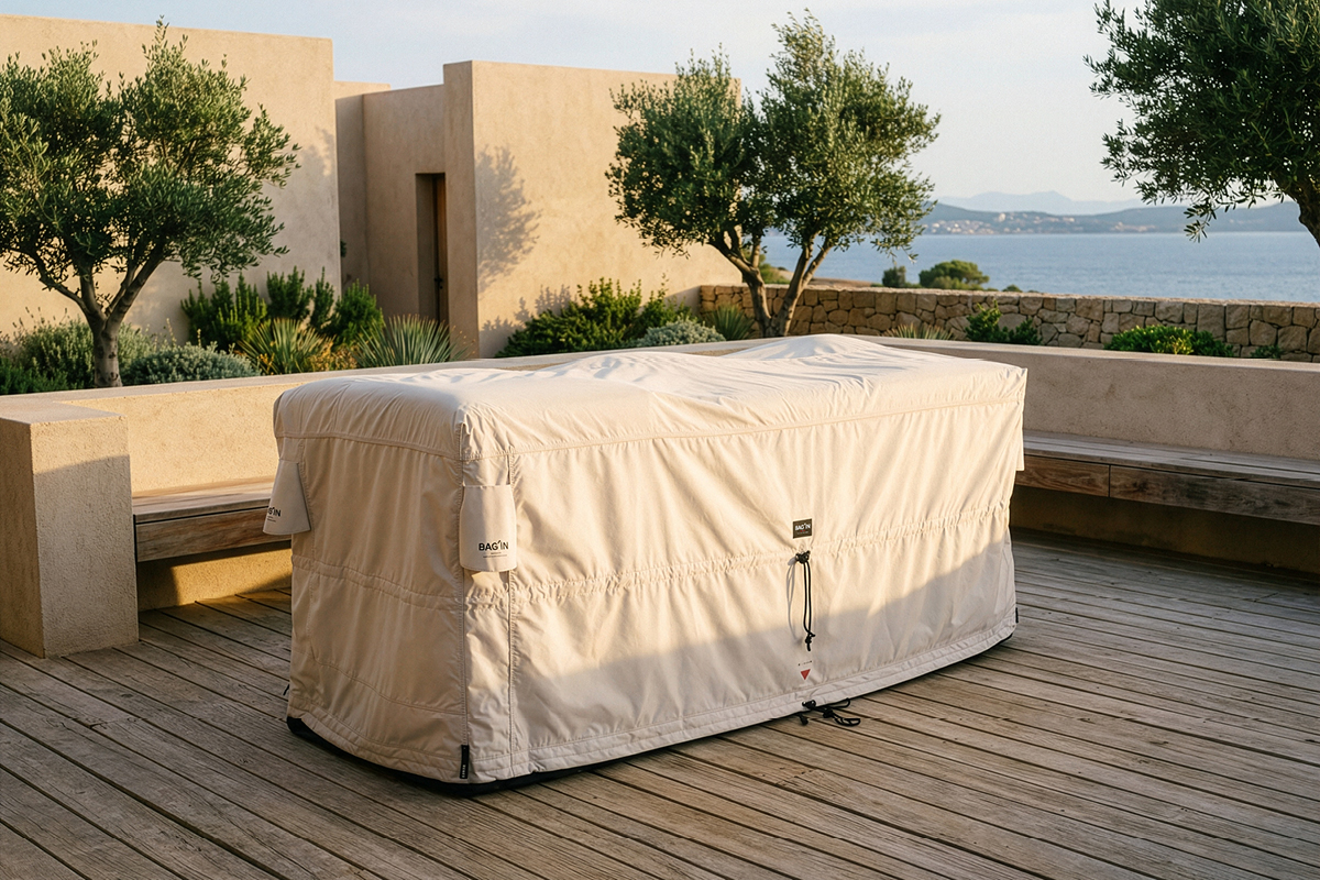 Utvecklad för intensiv sol och höga temperaturer. Med denna BAG´IN-modell lagrar du dina utemöbler tryggt – detta är inte bara ett traditionellt möbelöverdrag, utan en komplett förvaringslösning som omsluter och skyddar möblerna när de inte används. Den är optimerad för att minska blekning, värmeuppbyggnad och slitage i solexponerade områden och ger ett säkert, heltäckande skydd över tid. Perfekt för semesterbostäder runt Medelhavet och andra soliga regioner där utemöbler står exponerade under långa, varma perioder.