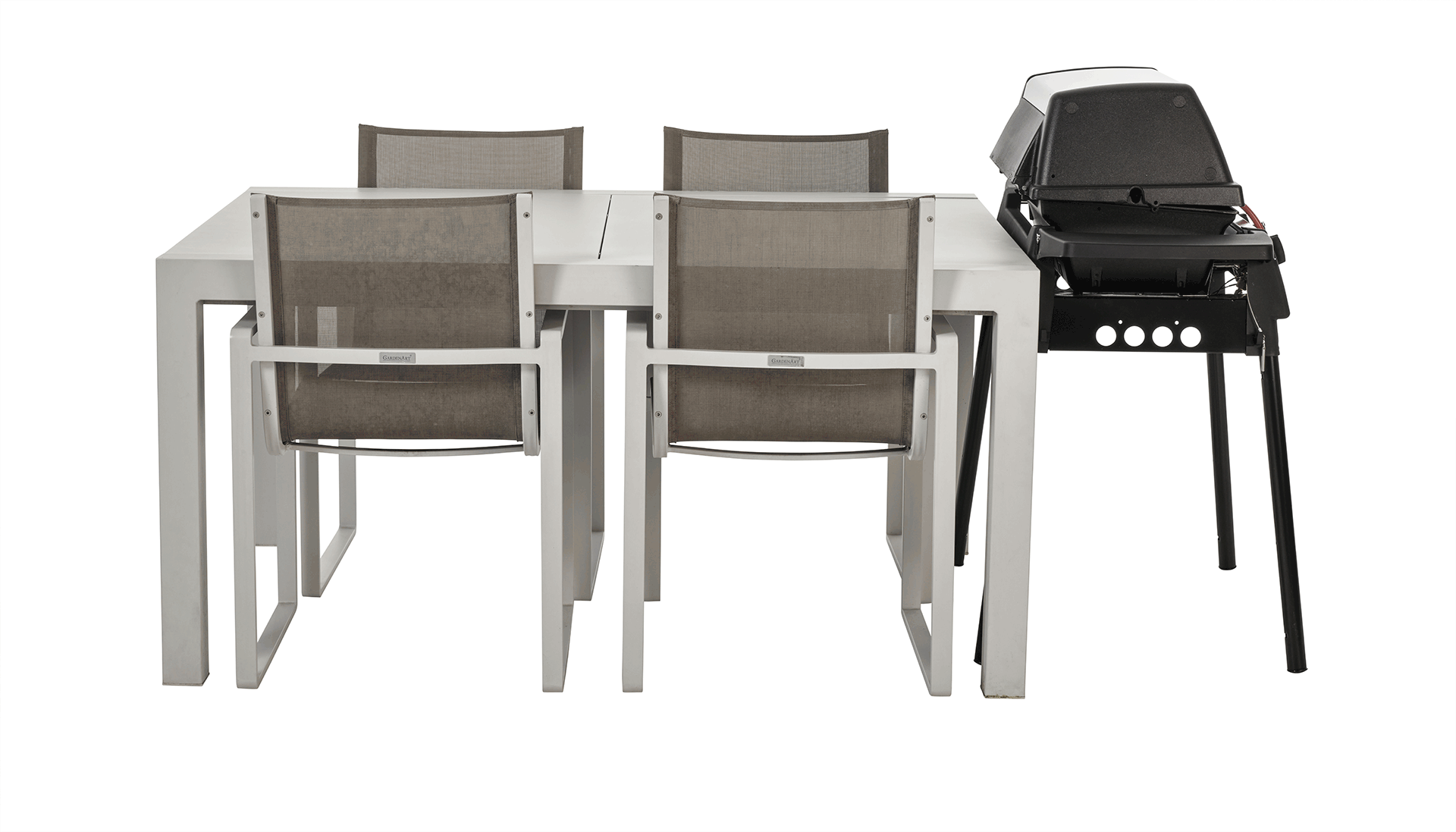 Den mörkgrå färgen ger ett modernt uttryck och passar bra till både ljusa och mörka utemöbler.